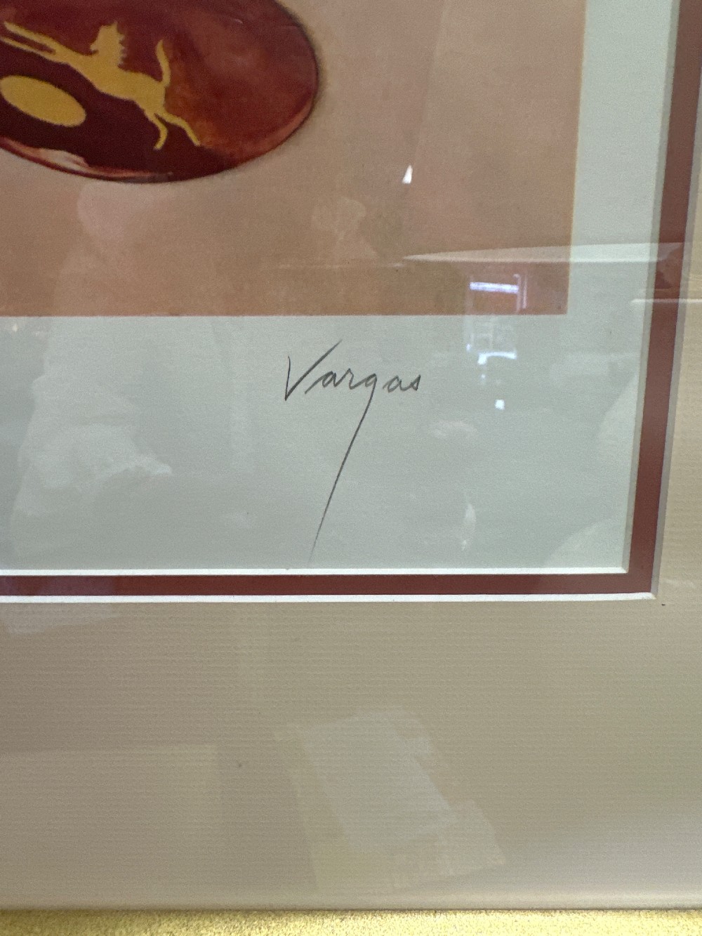 Extremely rare limited edition hand signed by Alberto Vargas. This image is one of the artist's favorite works from the 1920's. Framed in Gold 28wx 33h