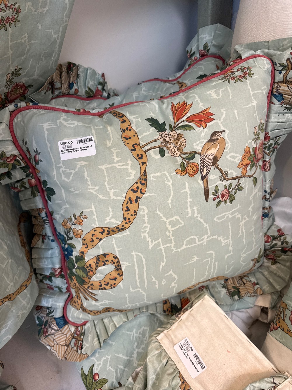 Queen bed skirt and 3 coordinating pillows VGUC
