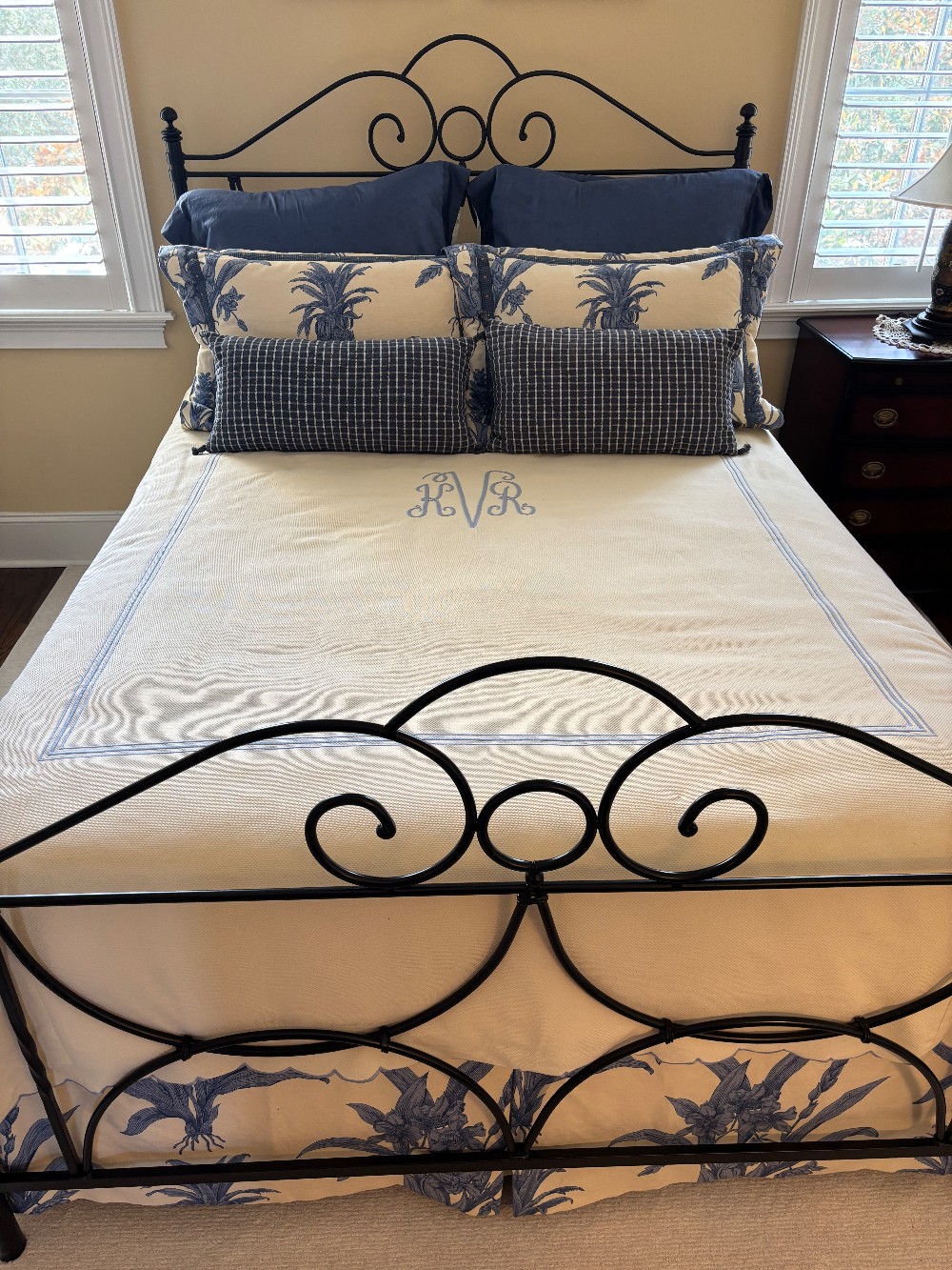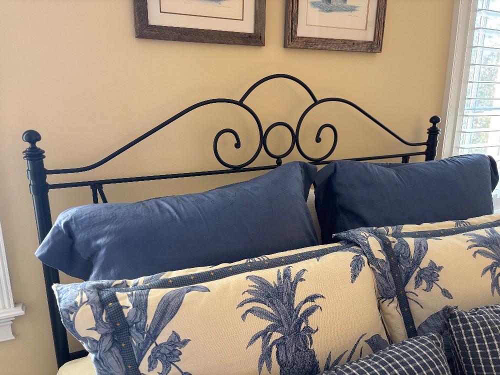 Queen Black Iron bed. 60x84, headboard 59", footboard 41"