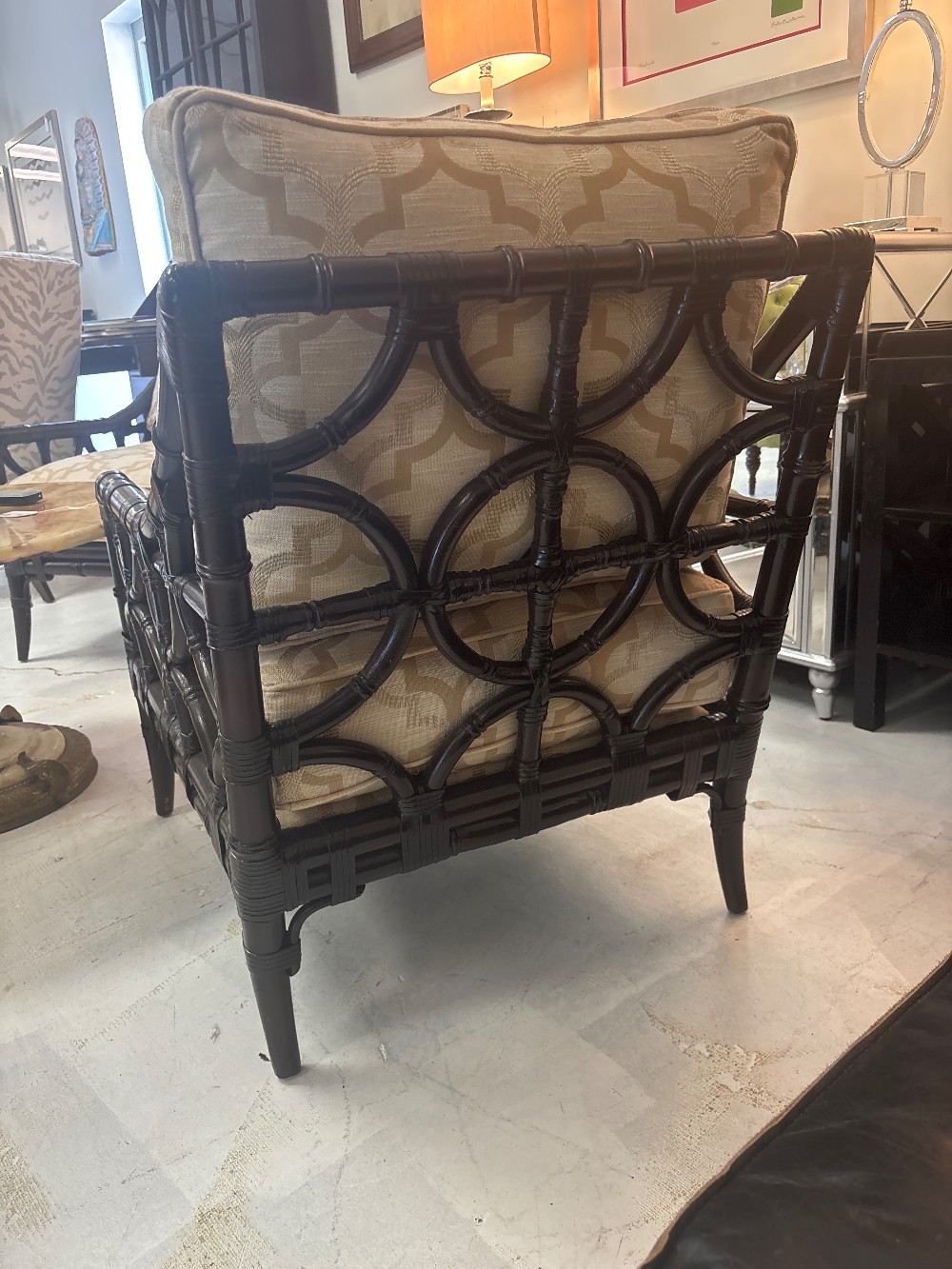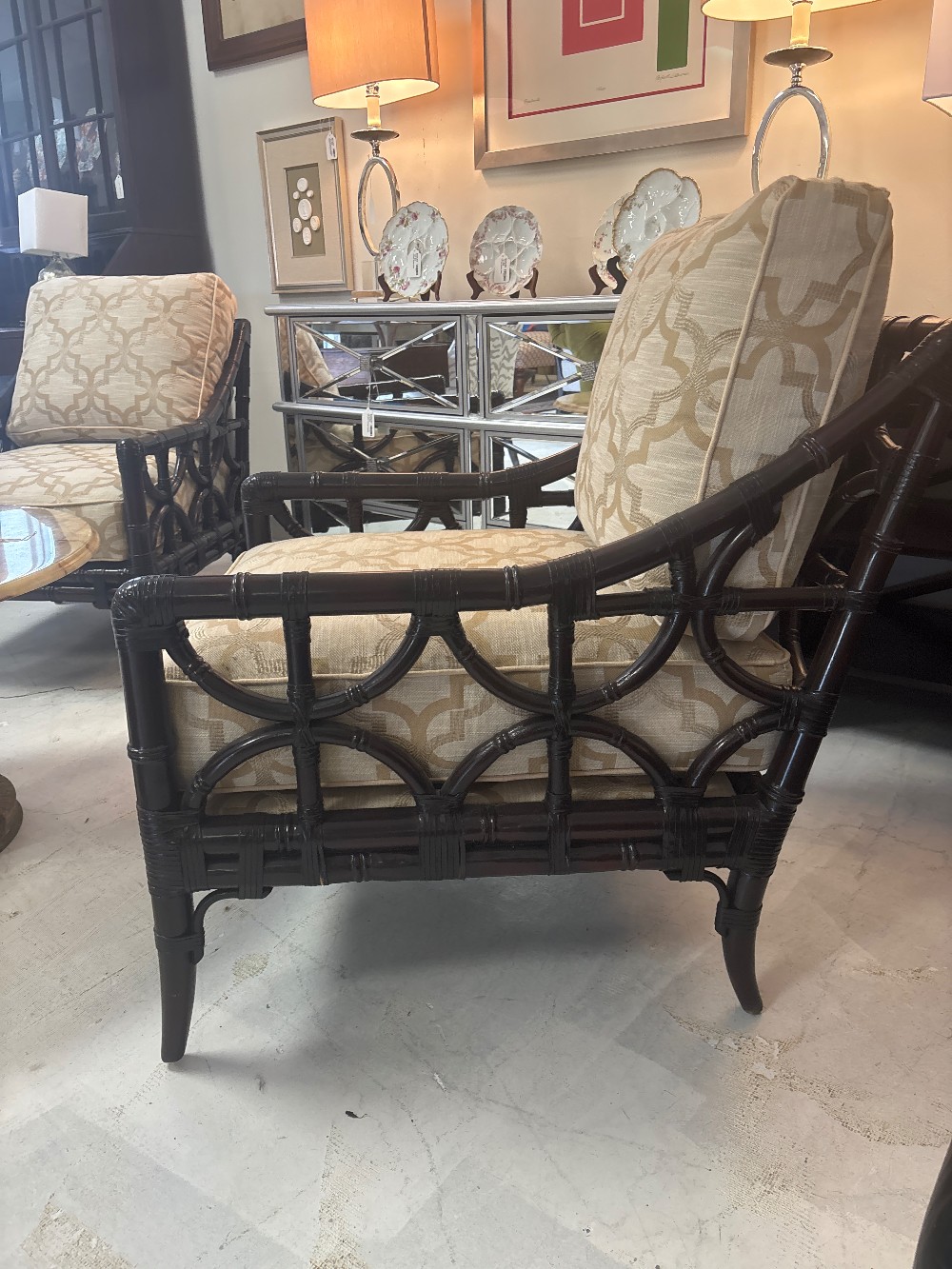 New without tags pair of Chippendale style faux, bamboo chairs with upholstered cushion. 28 wide by 33 deep by 31 tall.