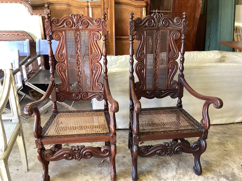 PAIR 19th-century Baroque-style throne chairs