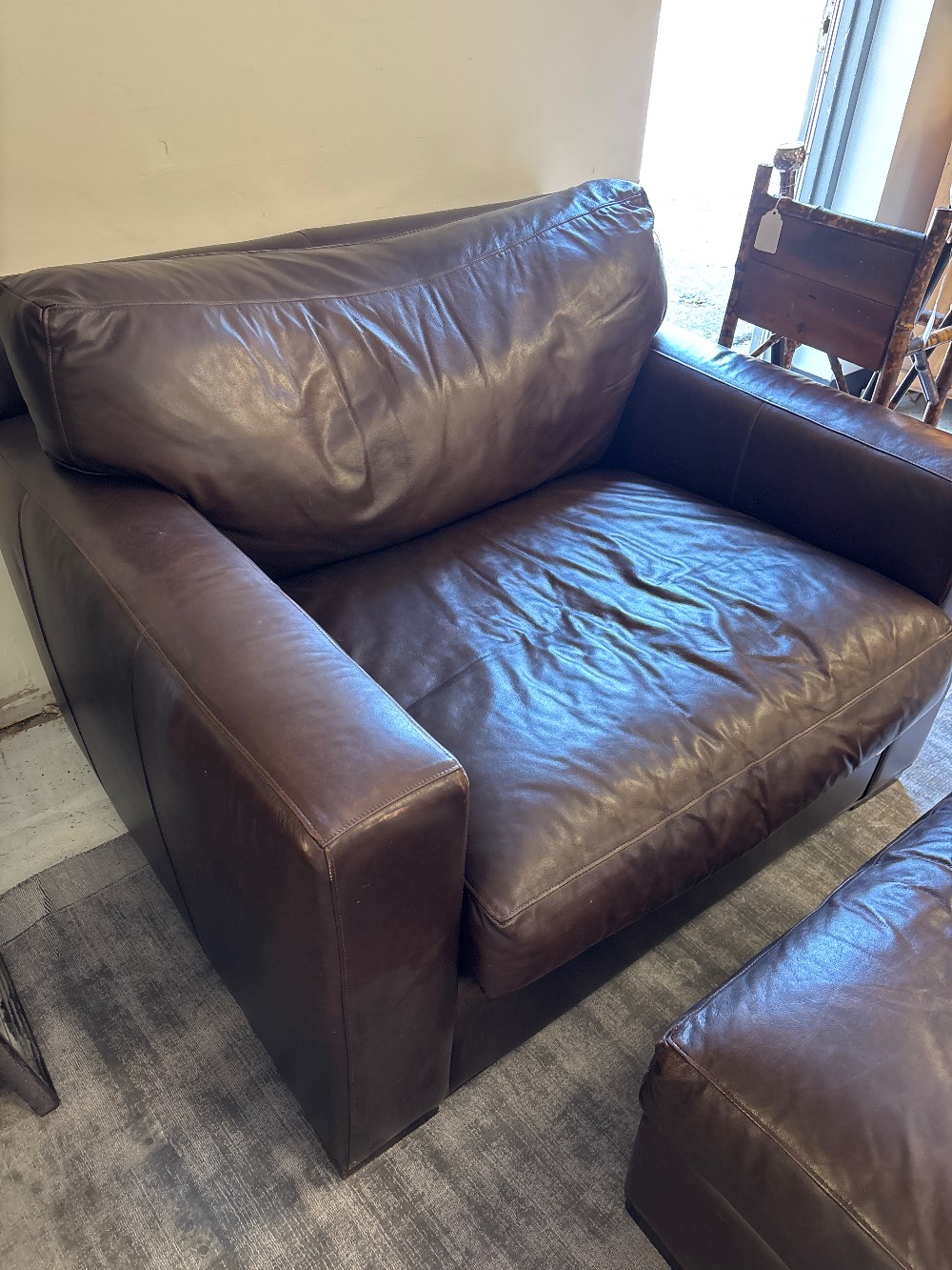 Crate and Barrel Leather Oversized Chair and Ottoman