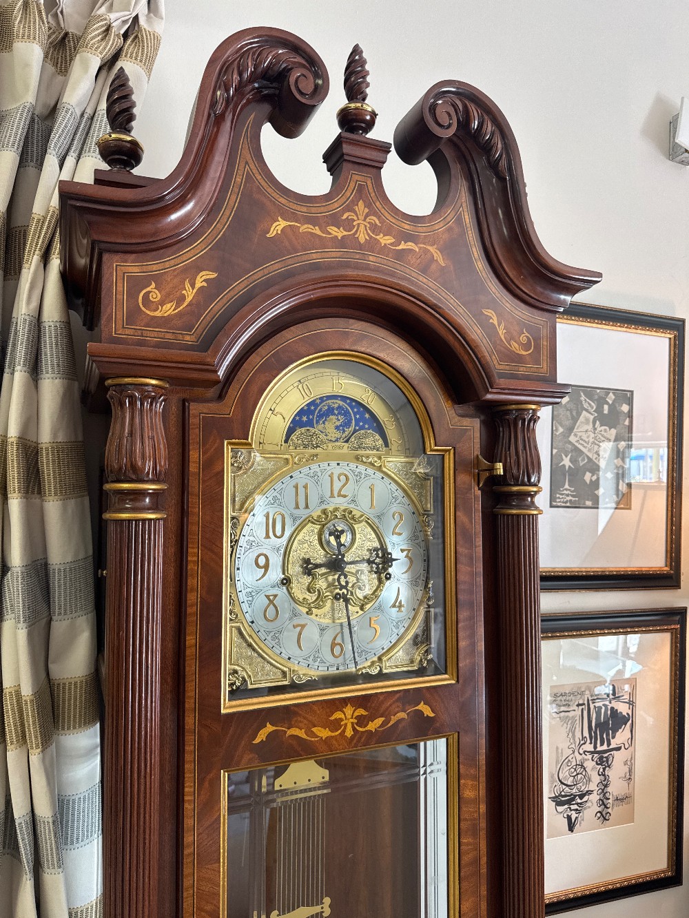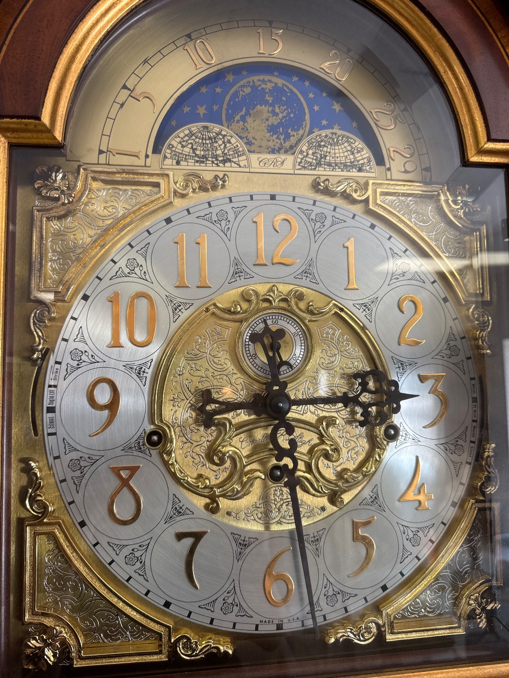 Limited edition #390 of 1000 Charles Sligh Marquis Clock. Excellent working condition.88"h x 27"w x 16"d. Moon phase and calendar dial.