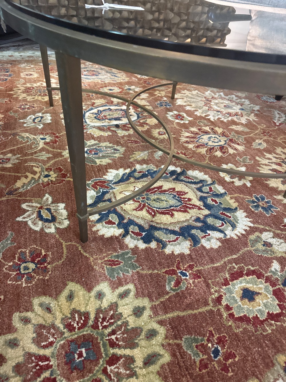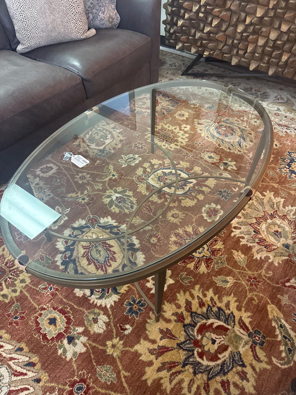 Brass oval glass top coffee table 48" x 31"