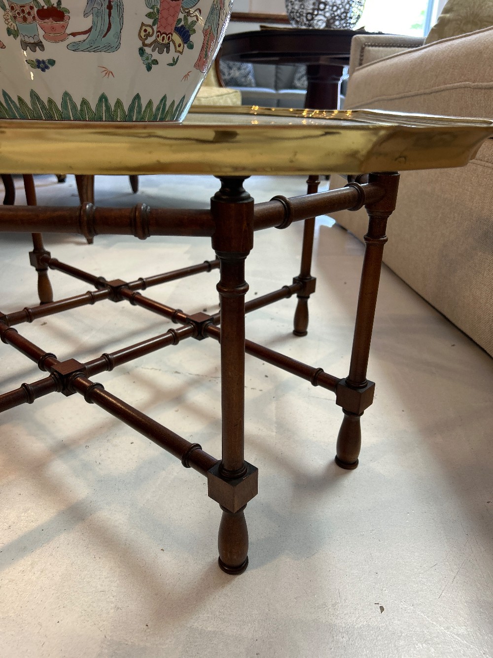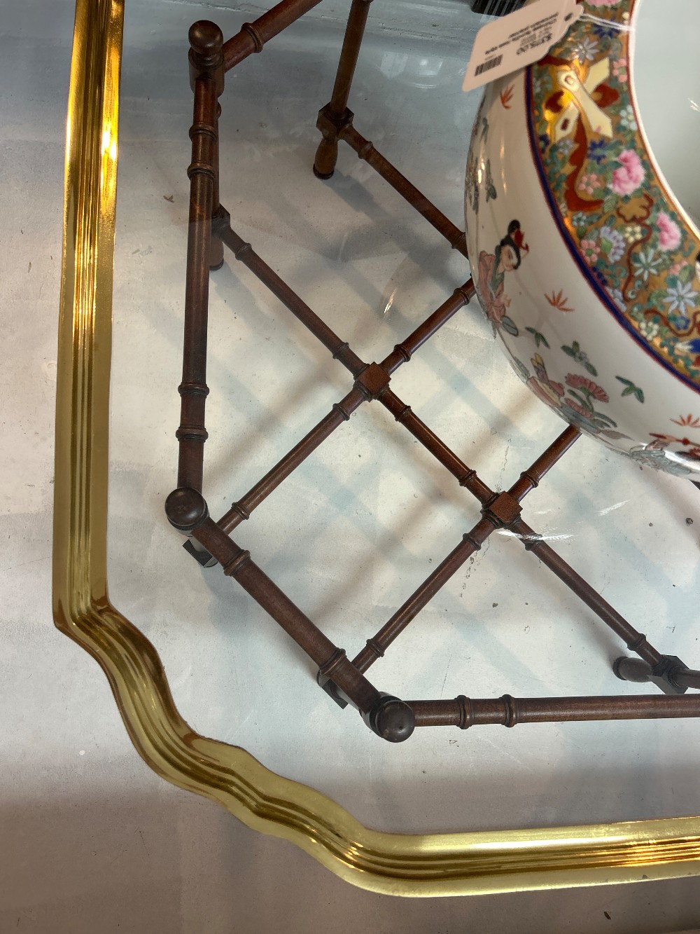 Vintage Baker faux bamboo brass and glass coffee table