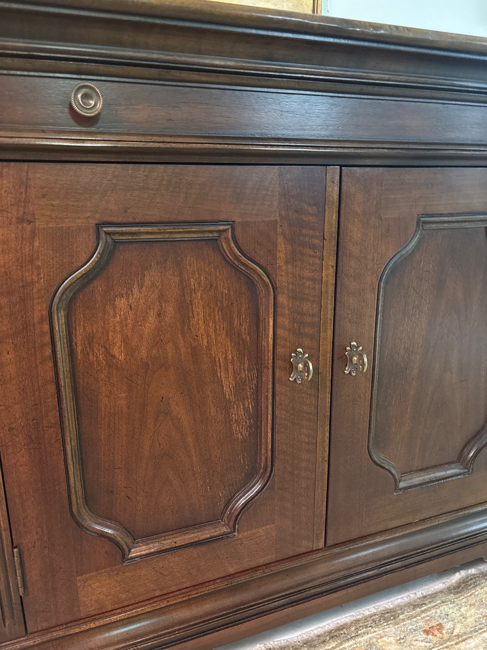 Baker Furniture French Regency cherry wood sideboard credenza or bar cabinet. 64”w x 20”d x 34”h