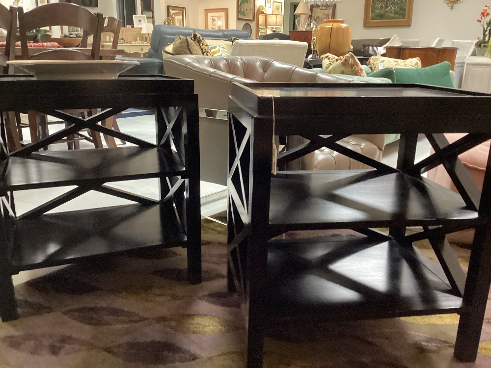 Beautiful PAIR of Baker Black End Tables 27" Tall 23.5" Wide 17" Deep