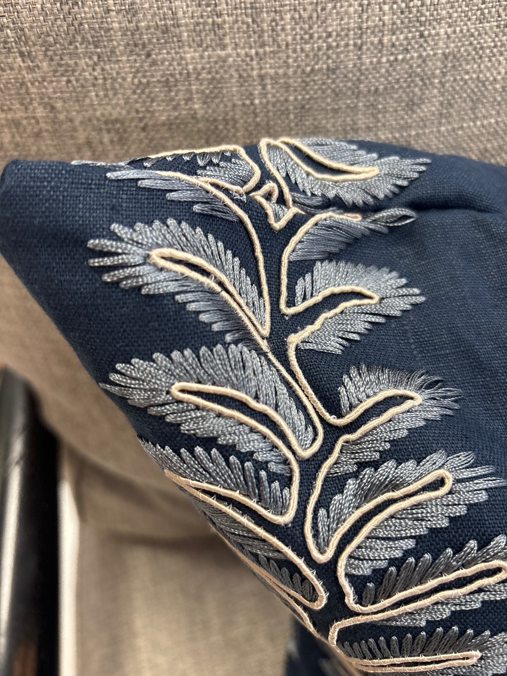 New Handmade pillows in blue and white embroidery. Linen fabric. 17"