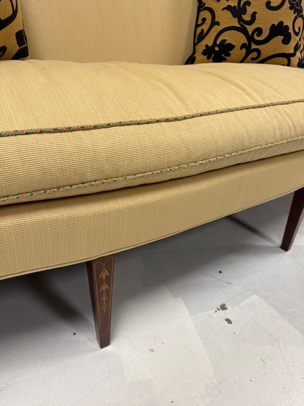 Classic lines Hickory Chair sofa with one loose seat cushion. Beautiful cording trim. 7'L x 36"D x 36"H