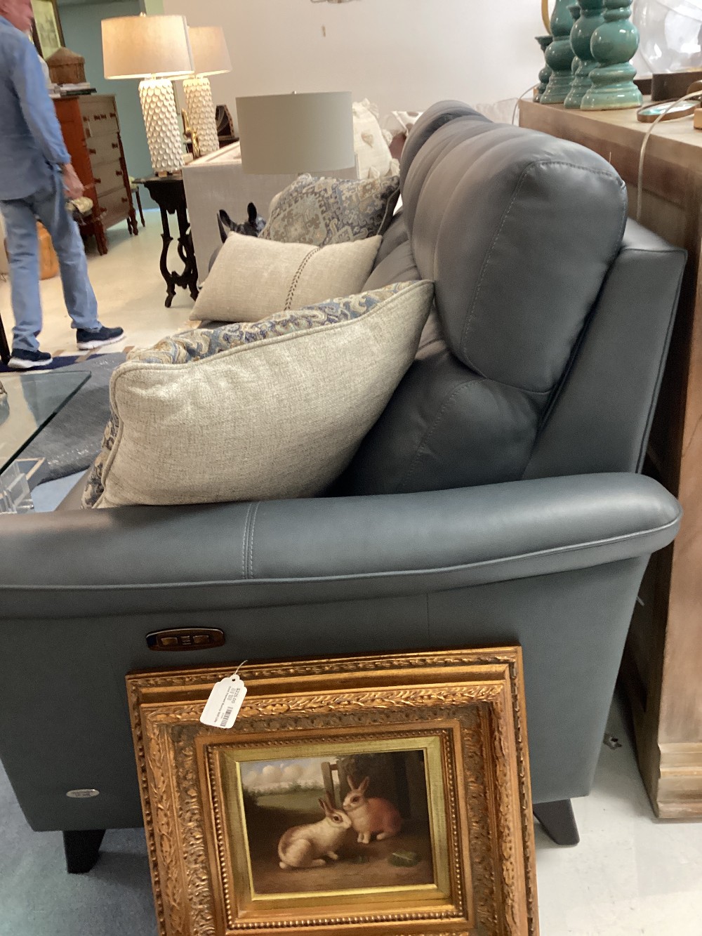 Cindy Crawford Electric Reclining Couch Blue/Grey Leather Retails for $1,199. 44" Tall 72" Wide 26" Deep