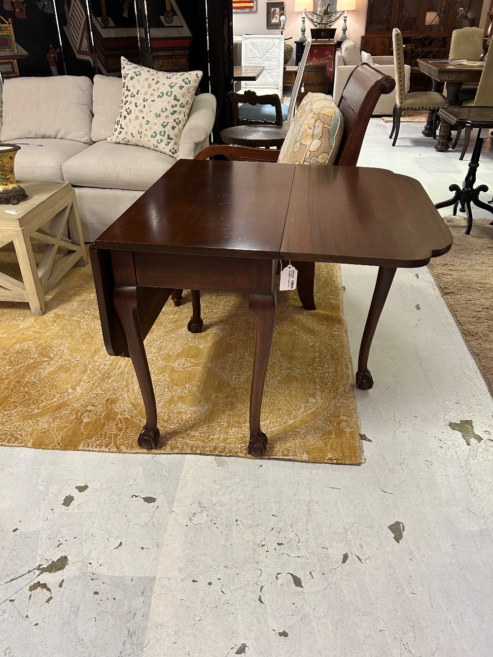 Beautiful mahogany drop leaf table with swing legs in excellent condition. 3' diameter, 17" center, each leaf 16.25"